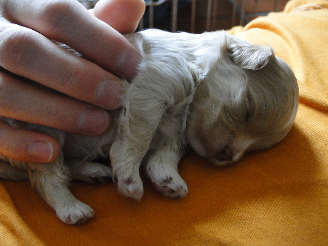 Welpe 4 Rüde, geboren 22.9.2011, 17.53 Uhr, 170g (vergeben)
