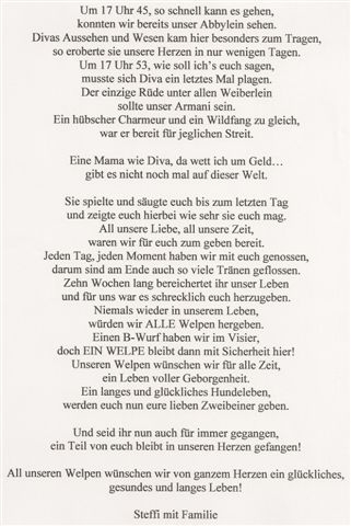 So, nun haben wir es endlich geschafft...unsere Welpen haben Namen!