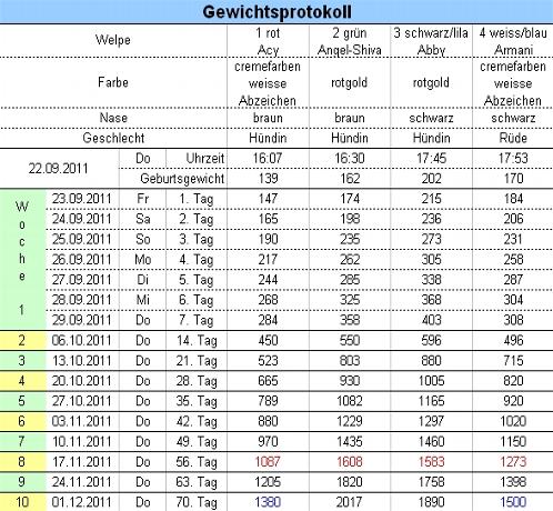 Alle Welpen haben ab dem ersten Tag zugenommen !