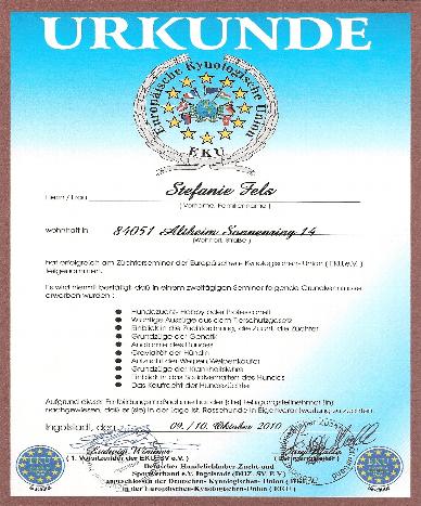 Diva hat ihre Zuchttauglichkeitsprüfung bestanden und Frauchen hat sich auf einem Züchterseminar ganz viel Wissen angeeignet.