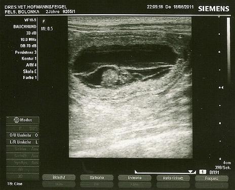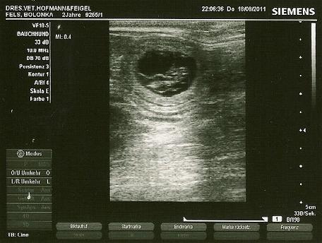 Unsere liebe Tierärztin war sehr behutsam und konnte ca. 3 bis 4 Welpen sofort entdecken.